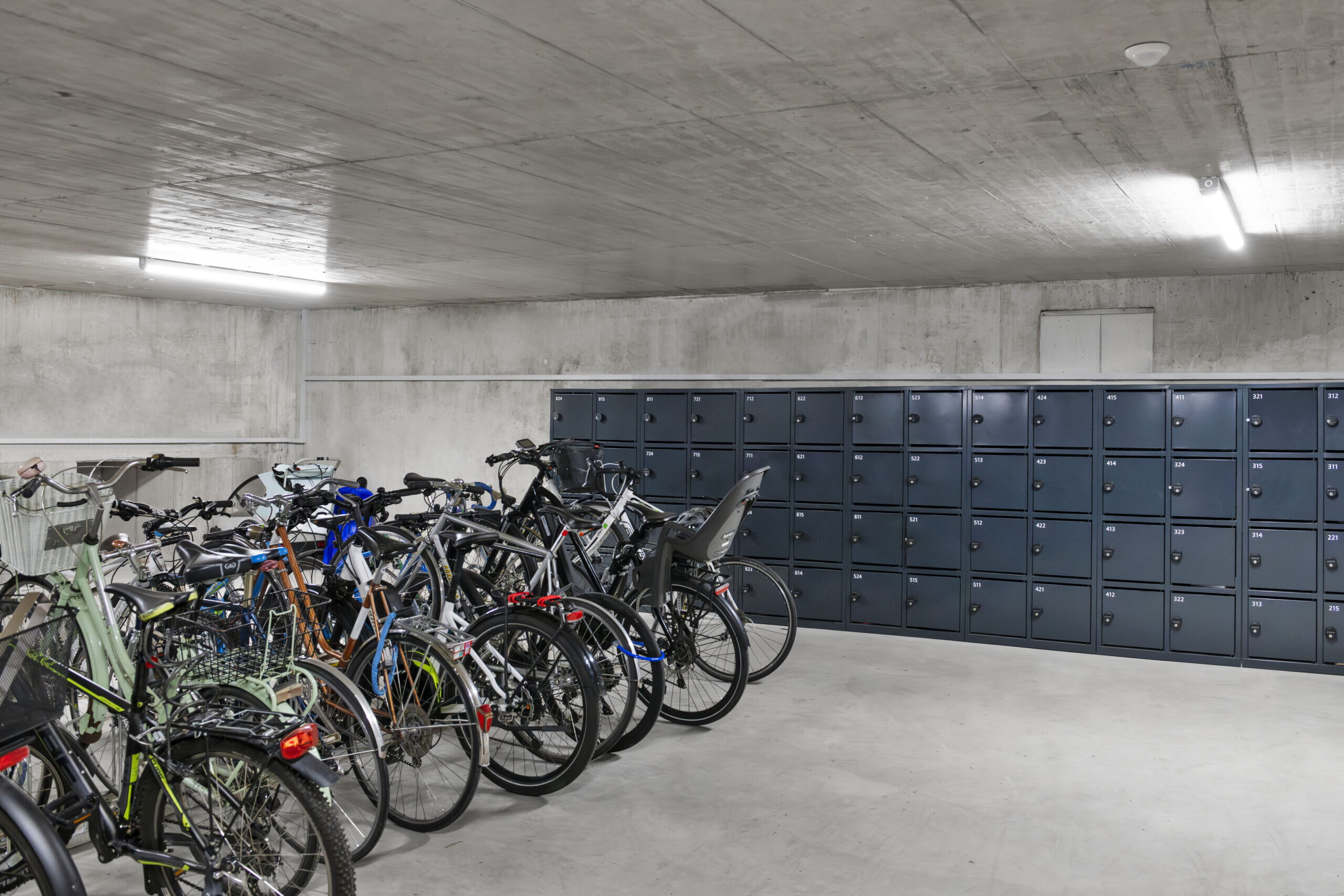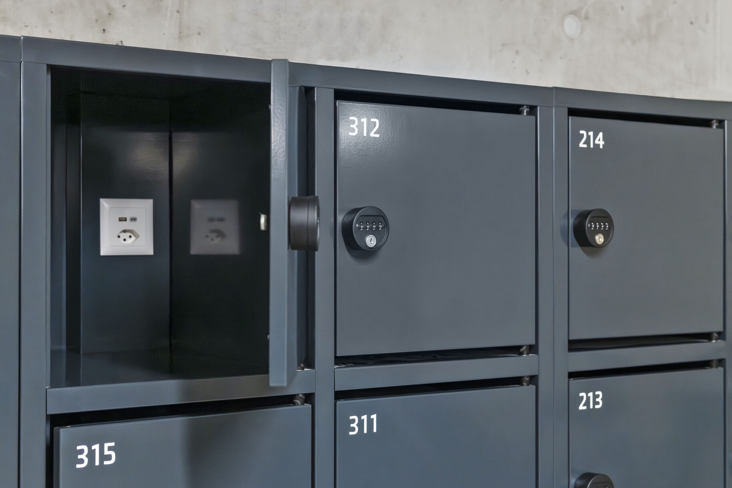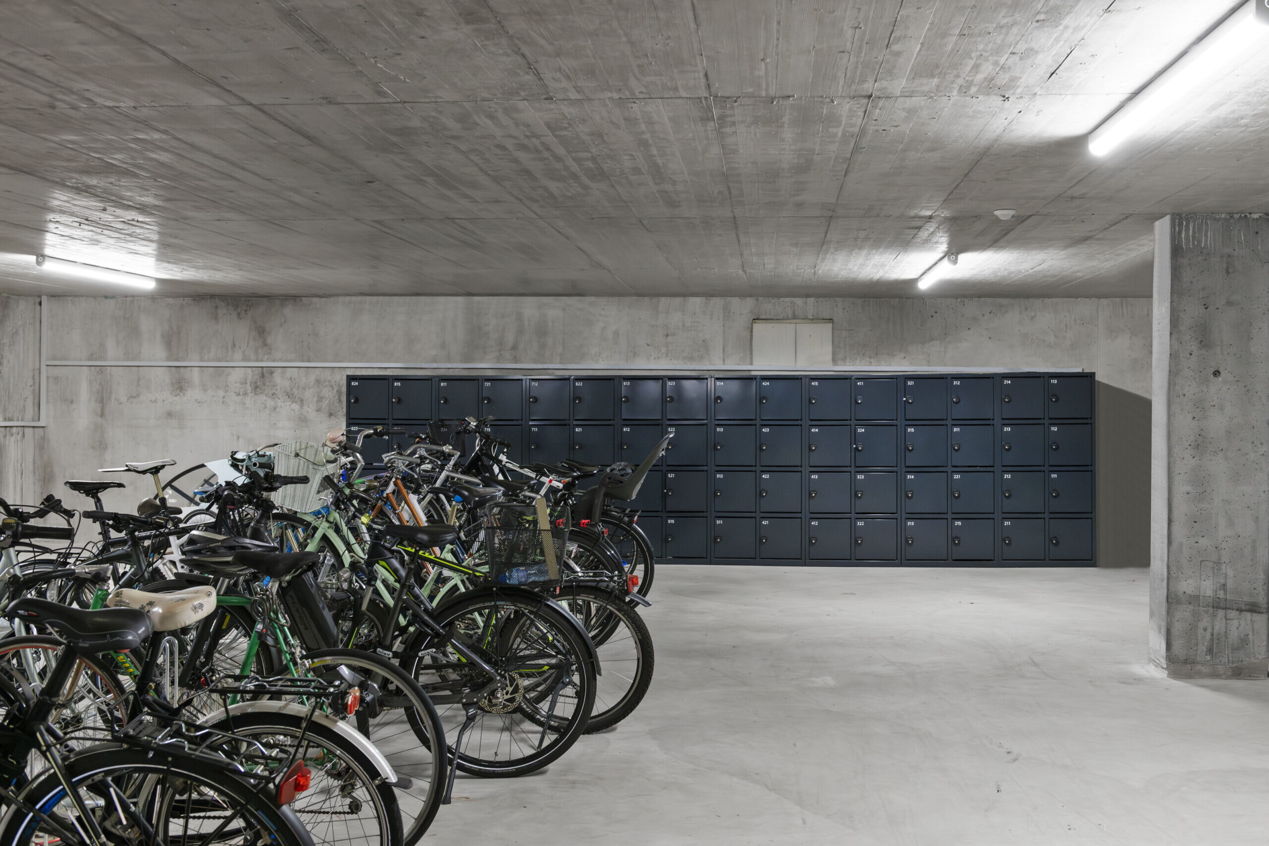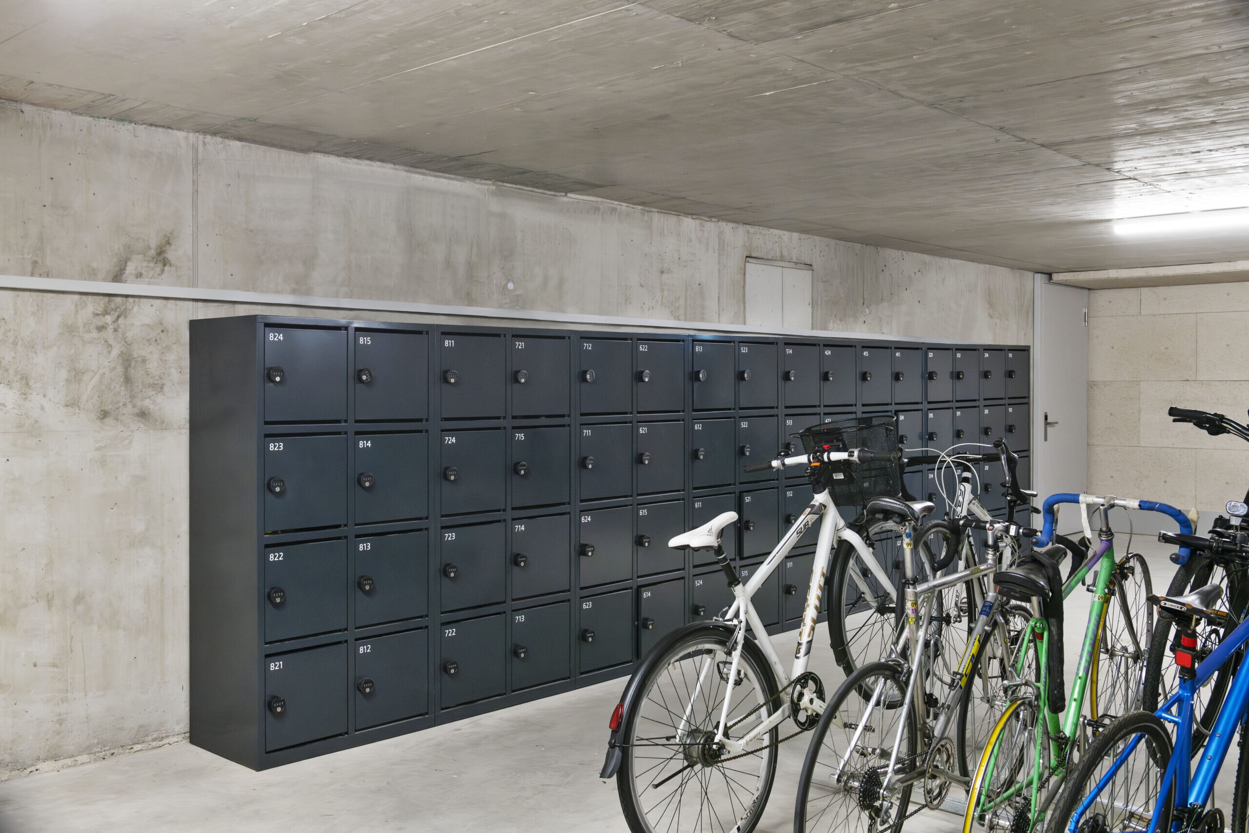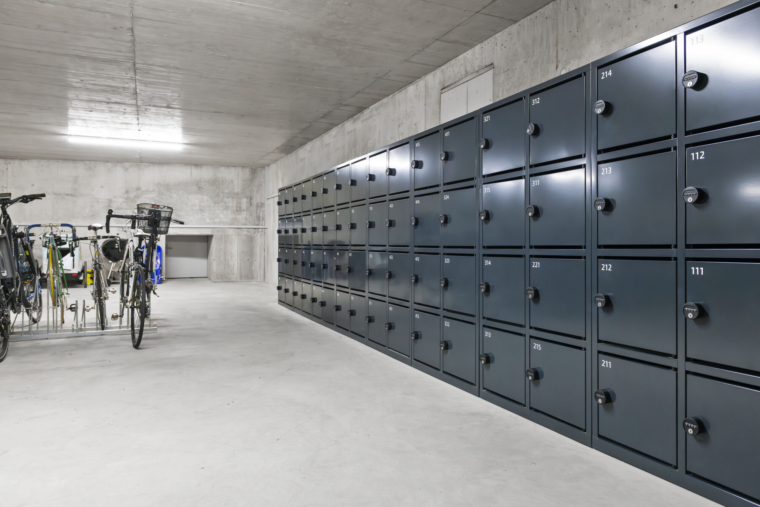 Dans le local à vélos du complexe résidentiel Holligerhof de la coopérative FAMBAU à Berne, les E-Locker offrent un espace de rangement sécurisé avec fonction de recharge intégrée. Équipés de prises électriques, de ports USB et d’une serrure mécanique à combinaison, ces casiers fournissent espace et énergie pour batteries de vélos électriques, ordinateurs portables, smartphones et bien plus encore – pratiques et bien pensés.