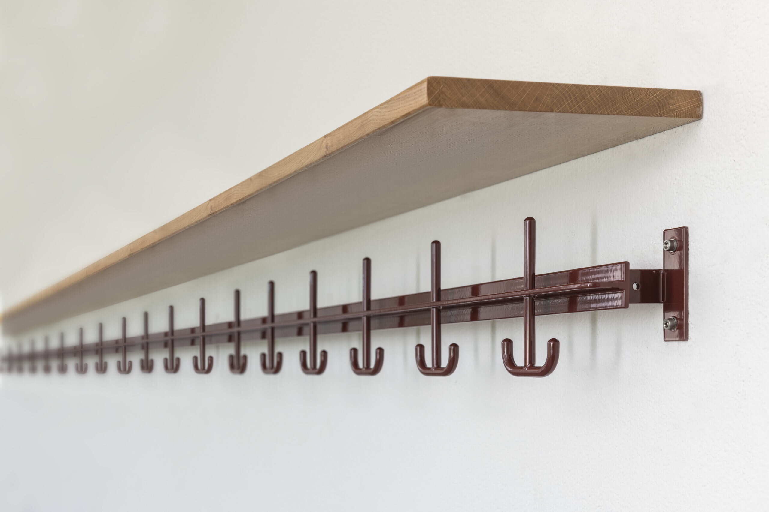 Le porte-effets minimaliste en bois massif de 30 mm paraît léger et flottant grâce à sa fixation murale dissimulée. Des lignes épurées et un langage formel réduit permettent une intégration harmonieuse dans presque tous les concepts architecturaux.