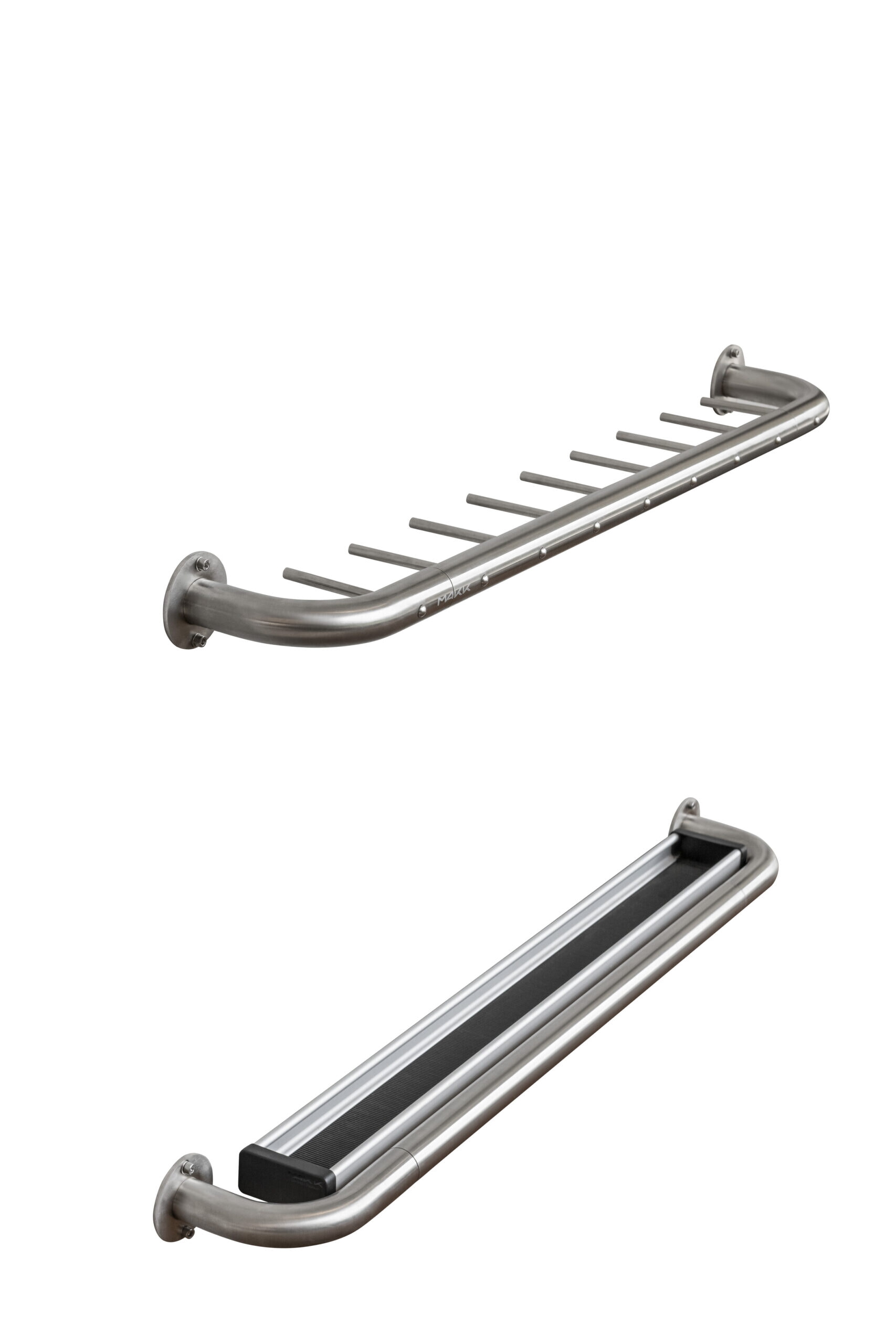 Stabiler Wandschirmhalter aus robustem Edelstahl (Rundrohr Ø 42 mm), auf Wunsch farbig pulverbeschichtet. Die abgestimmte Farbgebung integriert sich harmonisch in jede Umgebung und verleiht dem Raum eine individuelle Note.